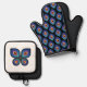 Cook in style with this Peacock Flame kitchen set, featuring a radiant butterfly on the potholder and a repeating flame pattern on the mitt for coordinated flair.