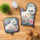 Set De Manoplas Persian Cat Blue Eyes in Pink Flowers Personalized