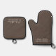 hecho con el amor personalizada oven mitt , puedes cambiar todo el texto para ajustar tus propias necesidades únicas, así puedes añadir un nombre de elección o mamá abuela nonna . todo sobre texto blanco brillante en un fondo de país marrón.