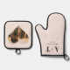 Añada un toque de romanticismo y lujo a su cocina con nuestro kit personalizado para horno y soporte para ollas. El mitt del horno presenta su monograma en una elegante letra de serif con un corazón entre las iniciales, mientras que el portaobjetos muestra su foto en un marco en forma de corazón. Perfecto para añadir un toque personal y romántico a su espacio culinario.
