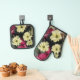 Manejar de forma segura bandejas de hornear, hojas de galletas y molduras de aleta del horno con este guarnecido negro de la olla que presenta una imagen fotográfica de las Poinsettias de vacaciones de temporada rojas y blancas. Un diseño botánico y festivo para las vacaciones de temporada. Seleccione del estilo del soporte cuadrado de la olla o el estilo del mitt del horno, o pida un conjunto de ambos. Imagen impresa en un solo lado.
