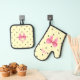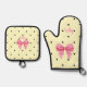 Polka dot black and yellow with pink bow oven mitt and pott holder. A personalized gift for her or him. The cook in your life would appreciate this bright colored kitchencore made by pretty pinny