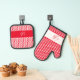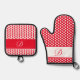 Set De Manoplas Polka-Punto Monogramado Rojo y Blanco