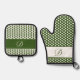 Set De Manoplas Polka-Punto Verde Oscuro y Monogramado Blanco