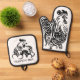 ¿Buscas accesorios geniales para llevar algo de diversión artística a tu cocina? Aquí hay portacolchones de pollo en blanco y negro que se pueden cambiar a CUALQUIER color para encajar en la decoración de tu casa. El original y único arte de Raphaela Wilson muestra un gallo y una gallina creados en un hermoso estilo de tinta floral. En el portador personalizado de la olla de pollo, puedes añadir tu propio nombre, iniciales en monograma, frase ingeniosa, o simplemente mantener la cita graciosa: "Clucken' Hot." Estos accesorios de cocina de pollo no sólo son lindos sino también muy funcionales y hacen grandes regalos para mamá, papá y cualquier amante de los pollos. Prepárate para impresionar a tus huéspedes con la mejor cocina de la zona. Categoría: adorables manitas de horno con pollos; graciosos portacolchones para los amantes del pollo; y regalos únicos de pollo añejos para papá/mamá. Tema de color: blanco y negro.