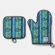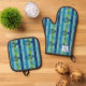 Set De Manoplas Preppy Coastal Fish Green Blue Stripe