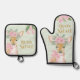 Set De Manoplas Preppy Pink Deer & Green Gingham Buon Natale