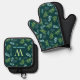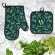 A pretty, blue and green watercolor dark floral design with your family name monogram & personalization in the center of the potholder. This makes the perfect newlywed or housewarming gift.