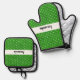 Set De Manoplas Punto de polka verde y blanco personalizado