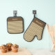 Las rayas estrechas de color café sobre un fondo de color crema hacen un juego de guantes y salvamanteles para horno simple pero elegante. El diseño simple y los colores neutros aseguran que irá con cualquier decoración y esquema de color.
