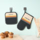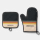 Cree su propio mitt de horno retro personalizado y portaplatos. Presenta un diseño de rayas vintage abstractas de los años 70 y un nombre personalizado en una tipografía de estilo clásico.