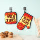 Set De Manoplas Red Flames Cookout BBQ Saying