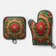 Beautiful Red Green Decorative Oven Mitt & Pot Holder Set