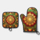 Beautiful Red Green Decorative Oven Mitt & Pot Holder Set