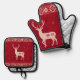 Red Norwegian Knit with Deer, Oven Mitt and Pot Holder
