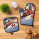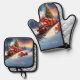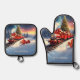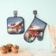 Beautiful Red Train Christmas Tree Holiday Oven Mitt & Pot Holder Set
