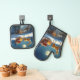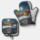 Beautiful Reindeer Christmas Sleigh Oven Mitt & Pot Holder Set