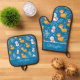 Un divertido personalizado de renos y Navidades de Snowman, Oven Glover y Pot Holder. Un diseño divertido con hombres de nieve usando bufandas rojas y bailando reno con un fondo azul nevado. El saludo " Feliz Navidad " se puede personalizar según sea necesario y luego personalizar con un nombre para hacer de este un artículo único para la temporada de fiestas