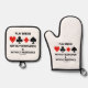 Si juegas bridge, el juego del puente o del puente duplicado, por completo disfrutarás de este puente irónico diciendo al horno mitt y al juego de portamaletas con el siguiente consejo del puente: "Jugar puente - sin reserva y sin resistencia". Viene con los cuatro trajes de cartas. Haz una doble toma sobre cómo jugar el juego del bridge con una dosis de humor de puente de lengua en mejilla con este mitt de horno y el juego de la olla!