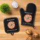 Un juego de Oven Mitt & Pot Holder para pizzas, restaurantes o camiones de comida, comida de entrega a domicilio, cocinero con un completo ilustracion de pizza margherita. ¡Los textos son totalmente personalizables! También puedes usarlo como regalo para un boda, un cumpleaños o un fiesta que calienta la casa.