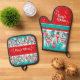 Retro Christmas Ornaments - Customizable Oven Mitt & Pot Holder Set - Retro Christmas will deck the halls this year. It will be a Merry One when you wear this cute Oven Mitt & Pot Holder this year! An original design by Diane Dempsey, creator of the Retro Christmas Card Company. Lightweight, stylish and durable, apron comes will make you look great baking Christmas cookies.