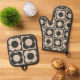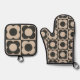 Set De Manoplas Retro modern -Flower Checkerboard - neutral taupe