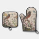 Set De Manoplas Robin Elegant Bird Butterfly Arte Francés
