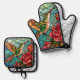 Añada colores vivos y encanto natural a su cocina con este juego de colibrí estilo vitral y de utensilios para horno de rosa. Con un pájaro colibrí radiante cerca de rosas florecientes, el diseño brilla con la ilusión de vidrios manchados, trayendo una elegancia alegre a la cocina cotidiana. Los colores ricos y las líneas delicadas resaltan los detalles complejos, mientras que el tejido resistente al calor ofrece belleza y función. Este conjunto coordinado es perfecto para proteger tus manos y superficies y añadir un toque de arte inspirado en la naturaleza a tu cocina.