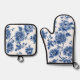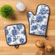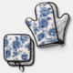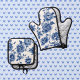 Set De Manoplas Rosasy Blancas Chinoiserie Azul
