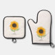 Rustic Sunflower Personalized Name Script Oven Mitt & Pot Holder Set