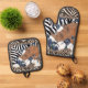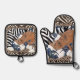 Sacred Rhino oven mitt and pot holder set featuring elegant earthy tones and bold wildlife art. Stylish heat protection for safari-inspired kitchens and beautiful Painted Wild gifting.