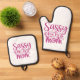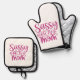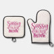 Unleash your little chef's sass! This adorable kids apron, Oven Mitt & Pot Holder Set is perfect for your mini-me who loves to help out in the kitchen, during craft time, or even gardening. Featuring the playful quote, "Sassy Like My Mom" in a vibrant, hot pink script with delicate floral accents, it's a fun and functional accessory.