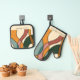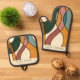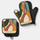 Add a designer touch to your culinary adventures with this personalized oven mitt and pot holder set from the "Serene Savanna Gentle" collection by Cor de Flor Design. This coordinated set features a sophisticated original abstract design with organic flowing lines and a warm, curated earthy palette of terracotta, forest green, and ochre.
