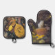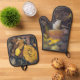 Oven Mitt & Pot Holder Set, con temática natural, presenta una foto de hermosos hongos boletos y hojas caídas amarillas en el bosque de otoño.