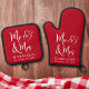 Set De Manoplas Sr. Mrs Hearts Monogram Red Boda