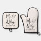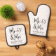 Se unieron las cacerolas personalizadas de horno blanco y negro y los portacolchones para los recién casados con "Mr & Mrs." en un gran y elegante guión y un ilustracion de dos corazones. Añada su nombre y fecha boda a continuación en una simple tipografía moderna.