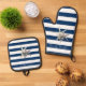 Set De Manoplas Starfish Adorable, Navy Blue Stripes Personalizado