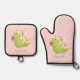Features a strawberry matcha design on oven mitts