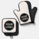 Personalizado de horno mitt y portador de sartén para empresas y empresas. Personalizar fácilmente el logotipo y el texto de su empresa. Sencillo blanco y negro.
