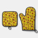 Decorate your kitchen decor with this eye-catching sunflower oven mitt and pot holder set. This design prominently incorporates vivid amber elements. Express yourself by adding an initial, if you would like the sunflower design only, be sure to remove the text and the graphic behind the text to reveal the full design.