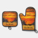 Pintura de la colección "Sunset Plaza Marina 2584" Mejora tus aventuras culinarias con el personalizado Oven Mitts y Potholders, elementos de cocina que combinan funcionalidad con estilo personalizado. Estas herramientas de cocina están diseñadas para elevar tu experiencia culinaria y añadir un toque de singularidad a tu cocina. El diseño creado a partir de mi pintura "Sunset Plaza Marina 2584" capta una vibrante puesta de sol con ramas de colores naranjas y rojos que llenan el cielo, enmarcado por vegetación de silueta y plantas florecientes en primer plano. Los tonos luminosos del cielo contrastan dramáticamente con las líneas oscuras del paisaje. Los productos coincidentes están disponibles en esta colección.