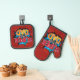 Super Dad Mustache Modern Grunge Oven Mitts & Pot Holders presenta el texto "Super Dad" en la tipografía moderna de color rojo y amarillo sobre un fondo de color azul y rojo con acento de bigote. Regalos para papá por cumpleaños, Día del Padre, Navidades, vacaciones y más. Creado por Evco Studio www.zazzle.com/store/evcostudio