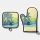 Set De Manoplas Surfistas de rayas hawaianas con gran atardecer -