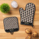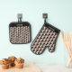 Un divertido dibujo animado de perros Scottie negros sobre fondo beige hace un excelente juego de manoplas y salvamanteles para hornos para cualquiera que ame a los Terriers escoceses, terriers en general o cualquier perro.