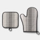 Diseño moderno de salvamanteles | Tres tonos de gris más negro y blanco se combinan en un patrón tejido para un giro moderno en un diseño de estilo retro. El diseño recuerda a los salvamanteles de algodón tejidos a telar que eran (y siguen siendo) un hobby popular. El salvamanteles y el guante de horno se pueden comprar como un conjunto o cada uno se puede comprar por separado, lo que le permite mezclar y combinar estilos si lo desea. Elija silicona plateada acolchada o negra para protección contra el calor.
