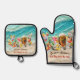 Un regalo con tema de playa tropical para conmemorar tu última aventura antes del anillo de juego de manoplas y portaollas. Invita, disfruta y cocina con tus familiares y amigos más cercanos. Perfecto para un tema de cóctel de playa. El diseño presenta playa tropical, aguas azules, cócteles, frutas tropicales y océano. Fácilmente personalizable con tu elección de texto y guión.