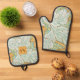 Set De Manoplas Verde monograma lindo verde botánico verde amarill