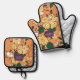 Elevate your baking experience with this eye-catching oven mitt and pot holder set. The design showcases a vibrant pattern of bold yellow flowers and green foliage set against a warm orange backdrop, with hints of purple adding depth and contrast. This graphic design evokes a sense of joyful, retro botanical art, making it a beautiful addition to any kitchen. Protect your hands in style and add a lively botanical touch to your culinary adventures.