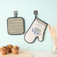 Bring a touch of winter charm to your kitchen with this personalized botanical oven mitt. Featuring soft watercolor blueberries, winter greenery, and muted sage-taupe striping, this mitt blends effortlessly with cottage, farmhouse, and modern coastal kitchens.