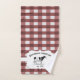 Añada un toque rústico a la decoración de su baño con toallas de baño de vaca rojas con manto de búfalo. El diseño de toallas incluye una vaca de granja en una etiqueta elegante y texto personalizado para que usted pueda personalizar con su nombre familiar en un fondo de patrón gingham. Otros objetos de decoración de casa disponibles con este diseño.